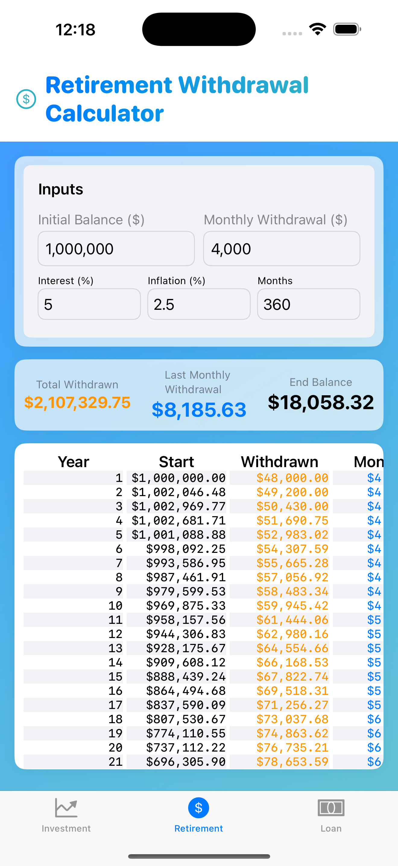 Retirement Withdrawal Planner